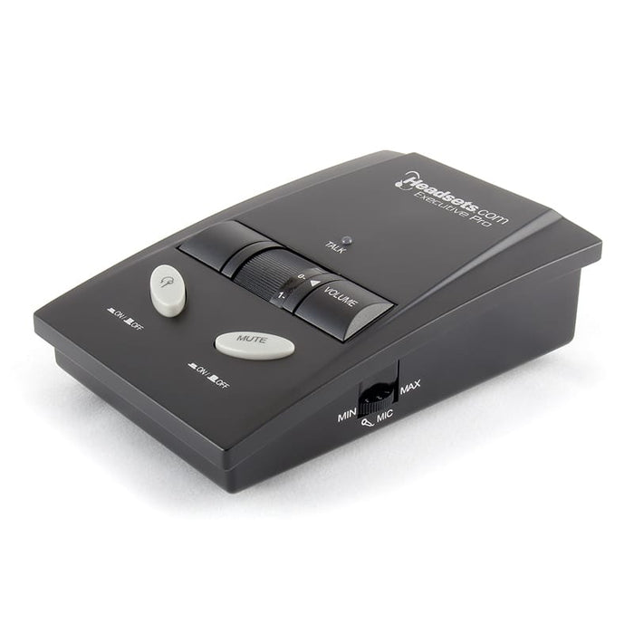 | What's in the box?: | Executive Pro Amplifier; Headset; Headset Hook; Carrying Pouch; Ear Pads; Quick Disconnect to Male Modular Cord; Velcro Pads; Pair of AA Batteries |
